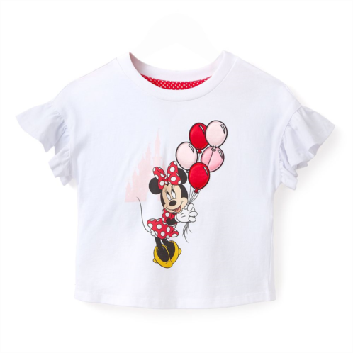Minnie will lift their spirits with her beautiful balloons on this contemporary, boxy fit tee featuring puffy embroidered appliques and dropped, ruffled wing sleeves. There's no way to go but up!