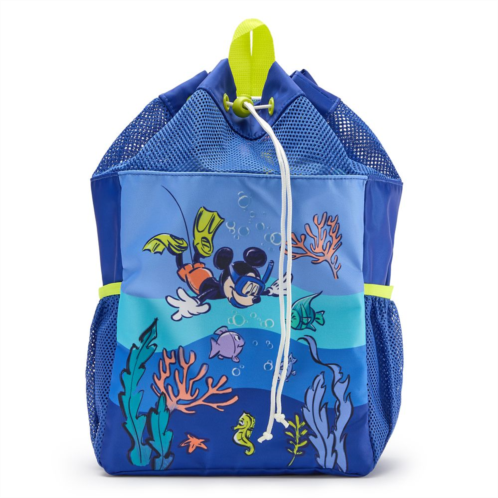 They'll look forward to diving into this swim bag on their trips to the beach and pool. Mickey is featured snorkeling among the fishes on the front and back panels. Featuring a drawstring top closure, mesh panels, slip pockets and adjustable straps, this drawstring backpack is the perfect aquatic accessory!