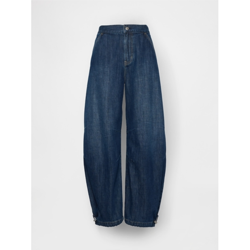 -Fit:An full-length horseshoe jean that's fitted at the waist with an exaggerated curved leg and tapered, cinched ankle.