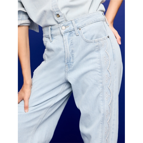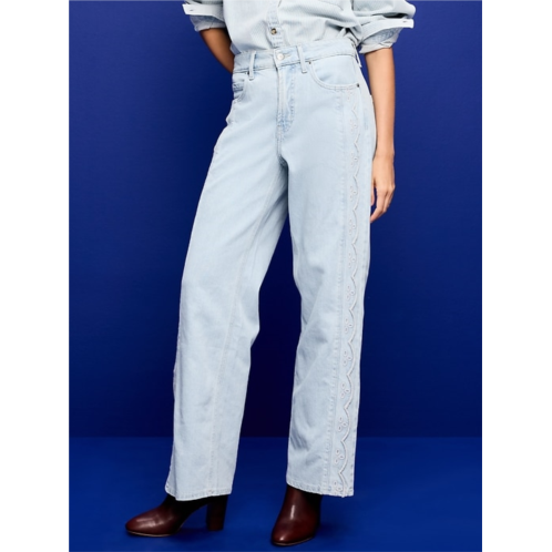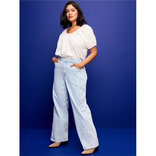 [US] OldNavy Extra High-Waisted Embroidered Wide-Leg Jeans