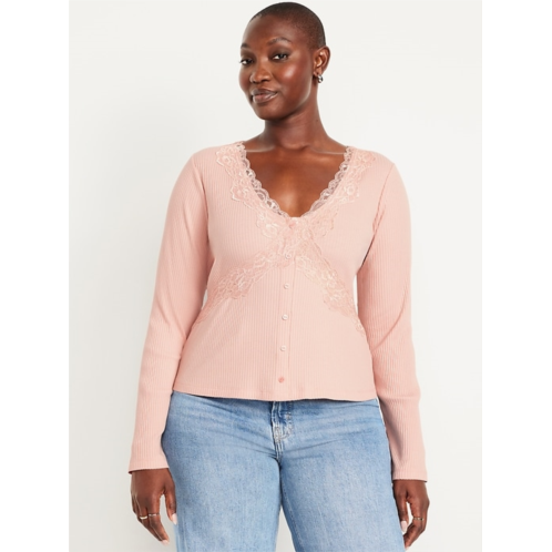 [US] OldNavy Lace-Trim V-Neck Ribbed Top