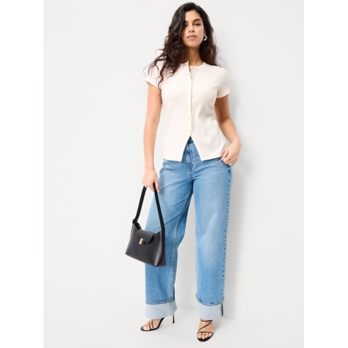 [US] OldNavy Short-Sleeve Ribbed Button-Down Top