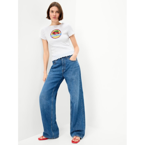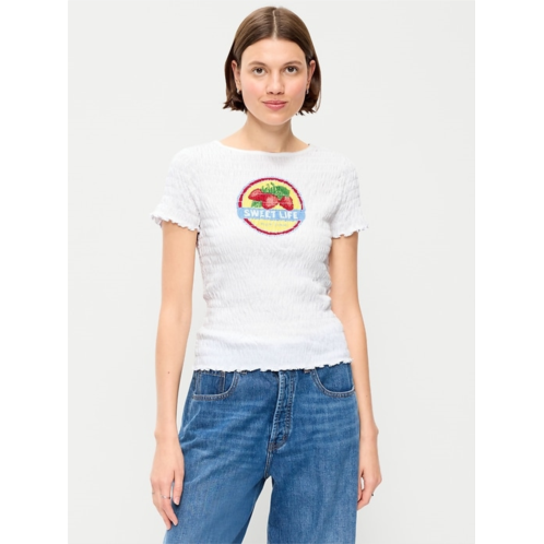 [US] OldNavy Slit-Neck Smocked Graphic Top
