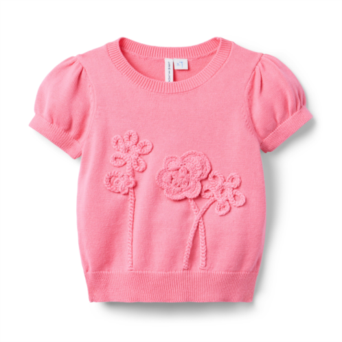 Freshly picked for fashion-forward moments, our soft sweater top is designed with floral applique details, puff sleeves and ribbed trim.