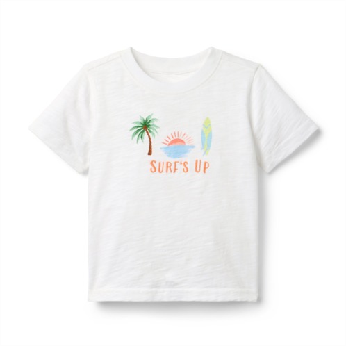 Hang ten with our pure cotton tee. Designed with a screenprinted graphic and an embroidered Surf's Up detail.
