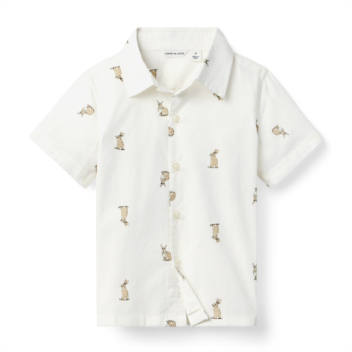 For Easter or any day, reach for our shirt in pure cotton poplin. Featuring an allover bunny print and a relaxed straight-hem silhouette.