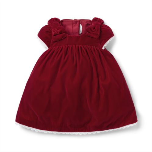 An iconic holiday favorite in plush velvet, just for baby. Designed for a season to remember with lace trim, shoulder bows and puff sleeves too.