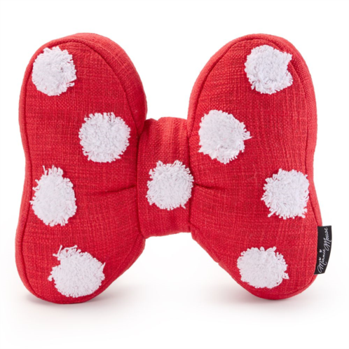 Everything looks better with a bow. Top off your home decor with our spot-on figural Minnie Mouse bow pillow. Our leading lady's signature accessory features her favorite polka-dots rendered in shaggy white tufted accents.
