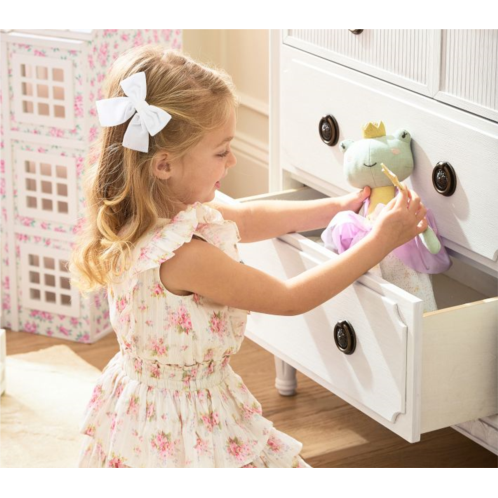 With her sweet smile and sparkling personality, Froggy Princess takes the crown for most magical friend. Crafted of soft cotton, the darling doll is embellished with shimmering fabrics, shimmering stars and a cuddly softness.