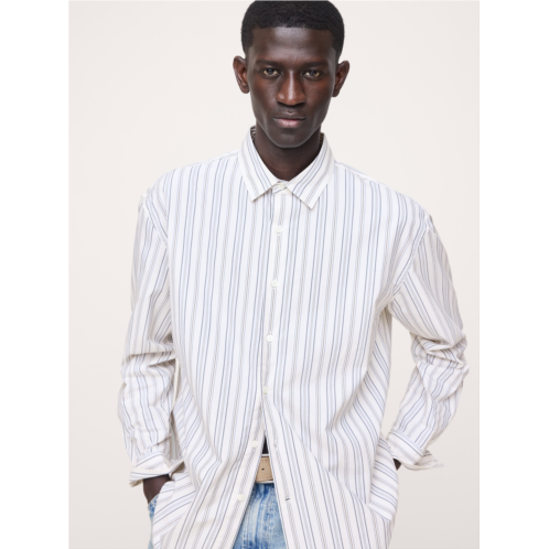 - Business or casual? It's the best of both worlds. This relaxed-fit shirt is cut from our signature 100% cotton poplin, in a design that's laidback, but never sloppy.