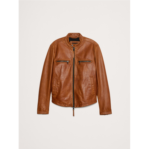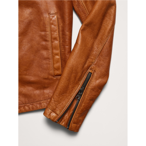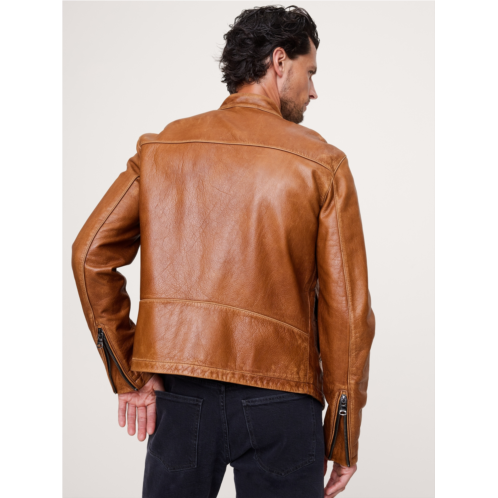 - Crafted from supple leather with a silky soft interior lining, this classic moto jacket is finished with all of the traditional features you'd want in a moto jacket, like a banded collar over the neck and grommets under the arms to prevent overheating.