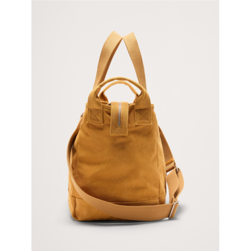 - A classic tote in rugged cotton canvas with leather accents, with a zippered closure to keep things secure.