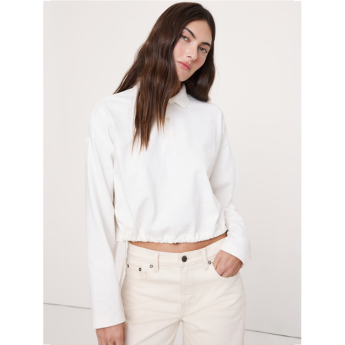 - A cute, cropped twist on the classic rugby polo, we added a drawstring to the hem to create the season's bubble silhouette and cut it in a heavier 100% cotton jersey with subtle, slub texture.