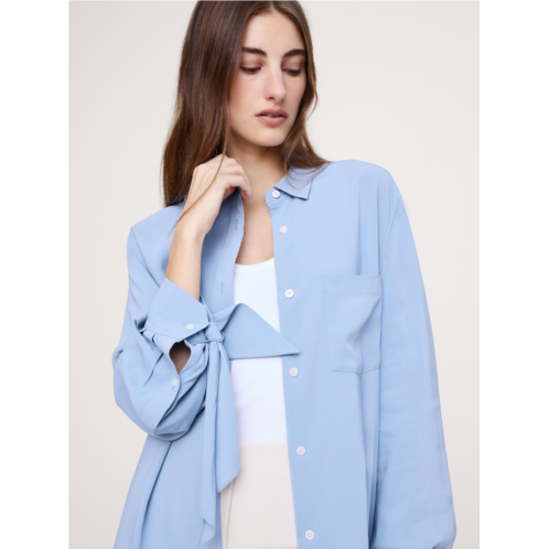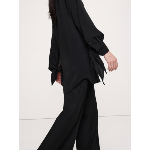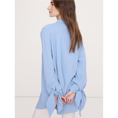 - Tailored, yet effortless, we cut this easy shirt with playful tie details at the cuffs from a soft, drapey georgette fabric that's alsosemi-sheer.