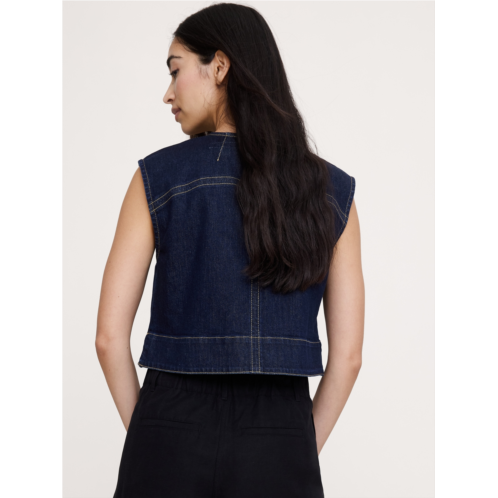 - An easy top, cut from softly structured 100% cotton denim and finished with decorative topstitching for a utilitarian vibe.