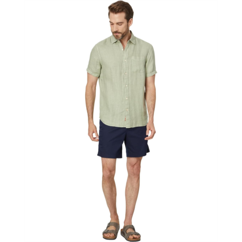 Stylish and comfortable, the Faherty Ss Palma Linen Shirt is perfect for your everyday look. The regular-fit shirt has a collared neckline, short sleeves, a front button closure, and a straight hem. The shirt has a naturally breathable construction with a natural texture that makes it perfect for prolonged wear. Pair it with shorts or your trousers for a statement look.