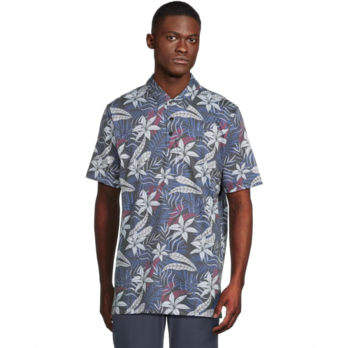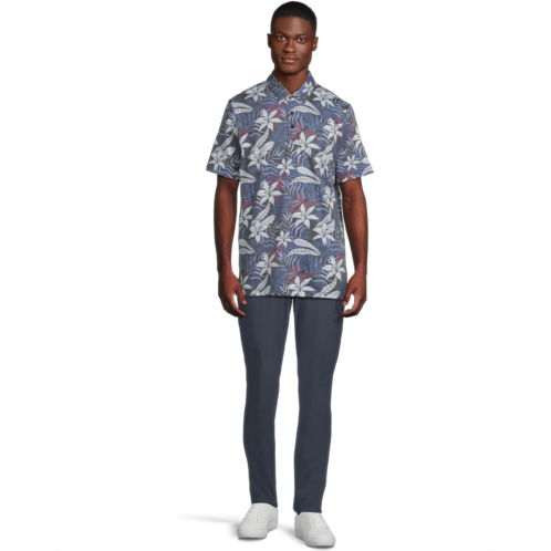 TravisMathew embodies effortless, versatile style with attention to detail and sophisticated simplicity. This top offers a collared neckline with a front button placket, short sleeves, allover print, and side slits at the hem.
