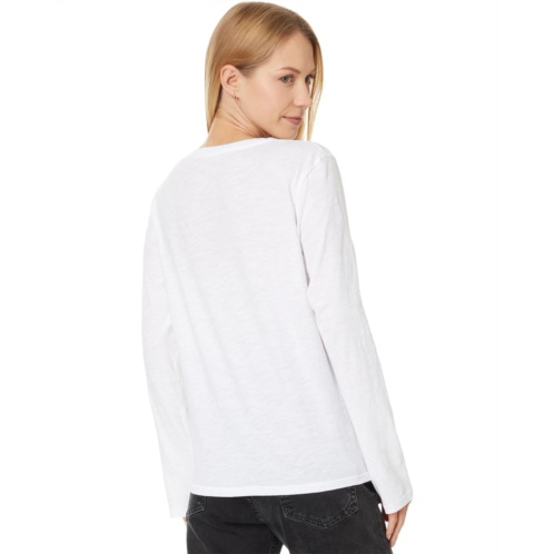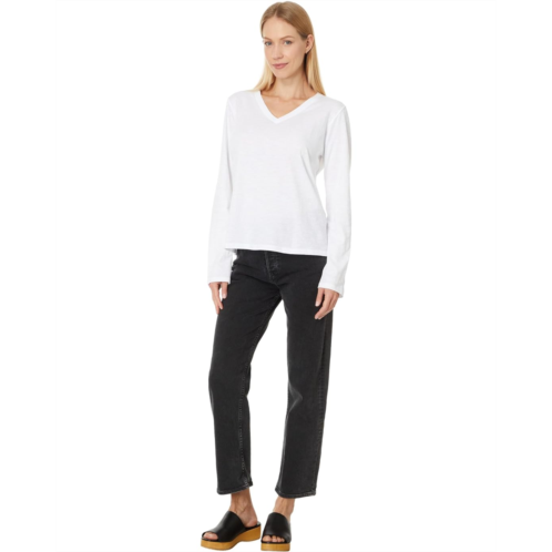 Feel the utmost comfort wearing Eileen Fisher V Neck Long Sleeve Tee. Soft and light, this organic cotton jersey has visual texture that comes from a very fine slub yarn. It is grown using regenerative farming methods that support soil health and biodiversity. The pull-on tee features a V-neck, long sleeves, and straight hem.