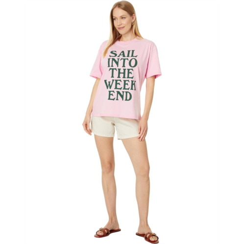 Feel the comfiest vibes wearing the Vineyard Vines Oversized Crew Neck SS Tee for casual day outs. The oversized tee is designed to offer a relaxed fit with its crew neckline, short sleeves, graphic printed text on the front, and straight hemline.