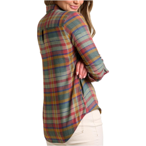 The Toad&Co Re-Form Flannel Long Sleeve Shirt for an outdoor queen. It is a lightweight herringbone weave made better by recycled polyester that is available in epic color combos. This shirt is comfortable and stylish and made from soft, lightweight herringbone twill crafted from post-consumer plastic bottles and salvaged cotton textiles. This shirt is perfect for any casual outing, featuring long sleeves with adjustable cuffs, a classic collared neckline, two button-through chest pockets with flaps, and a buttoned front closure. The droptail hem adds a modern touch to this classic design.