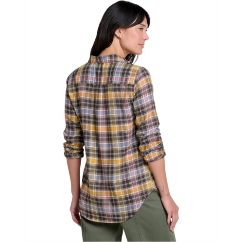 The Toad&Co Re-Form Flannel Long Sleeve Shirt for an outdoor queen. It is a lightweight herringbone weave made better by recycled polyester that is available in epic color combos. This shirt is comfortable and stylish and made from soft, lightweight herringbone twill crafted from post-consumer plastic bottles and salvaged cotton textiles. This shirt is perfect for any casual outing, featuring long sleeves with adjustable cuffs, a classic collared neckline, two button-through chest pockets with flaps, and a buttoned front closure. The droptail hem adds a modern touch to this classic design.