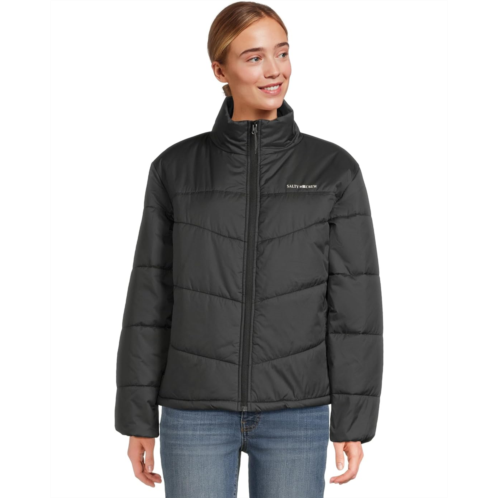 The Salty Crew Barrier Puffer Jacket features a 600MM water-resistant coating, recycled polyester fill, two lower hand pockets, and a zippered front closure for easy travel, with a screen print on the chest. Lightweight and versatile, it's equally at home on early surf check-ins, weekend hikes, or city wear when you want warmth without heaviness.