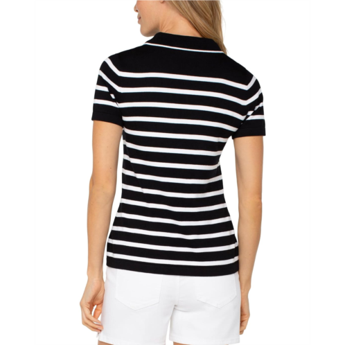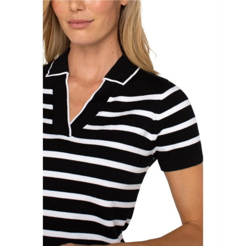Meet your new favorite fashion staple: the Liverpool Los Angeles Short Sleeve Collared Sweater Top. It is designed to fulfill all your fashion needs with its elegant collared neckline and timeless stripe print. The super-soft finish ensures comfort while the stylish details make it a standout addition to any wardrobe.