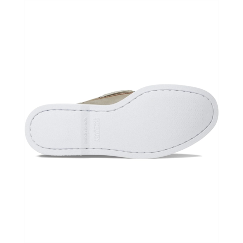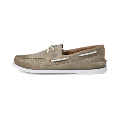 Slip into the comfortable handsewn design of classic Sperry A/O 2-Eye Whitewashed boat shoes.