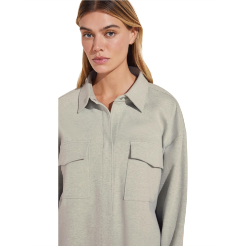 After a hard day, donning a nice and extremely comfortable sleepwear like Eberjey Luxe Sweats - The Shacket is all that you need. It features a collared neckline with buttoned detailing in front and long sleeves.