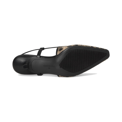 Slingback strap with adjustable buckle closure.