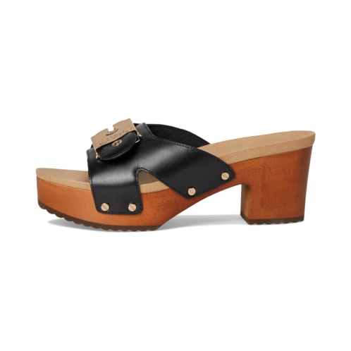 Introducing the Dr. Scholl's Original Max Too! Retro slides for women with a wooden clog heel and a thick molded footbed for extra comfort. Crafted with faux leather upper or Leather responsibly sourced through Leather Working Group-certified tanneries and linings partially made from recycled plastic bottles and artisanal wood sole made from natural beechwood certified by the Forest Stewardship Council. Vintage heeled clog sandal with oversized iconic Dr. Scholl's signature buckle, metallic stud details, open square toe, and platform heel. 1 SHOE. 1 TREE. ALL THE FEELS: With your purchase of this shoe, we'll donate one tree to Trees for the Future to offset carbon emissions and help impoverished families plant trees for a better life.