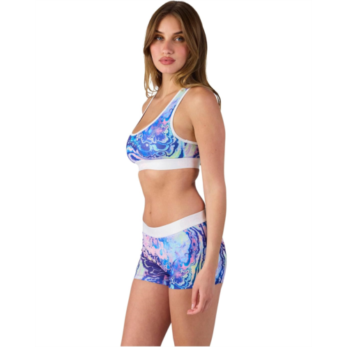 Turn up the heat wearing in the PSD Iridescent Spill Sports Bra. Designed for the bold, this wire-free wonder delivers full coverage and dynamic comfort with a soft microfiber blend band that moves with you. The racerback silhouette and light padding give just the right amount of shape and support without holding you back. Flatlock seams reduce chafing so you can focus on the grind, not the gear. The lined front adds extra durability, while the easy pull-on design keeps it fuss-free.