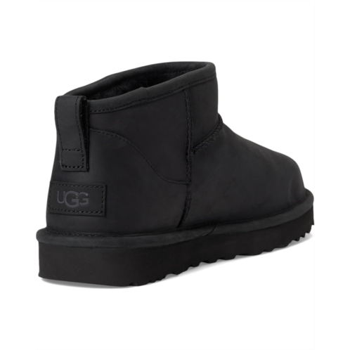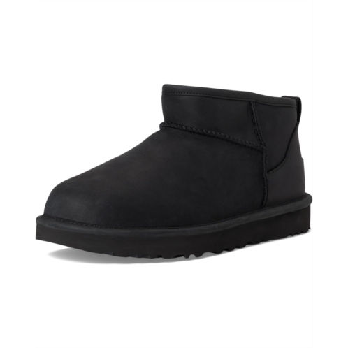 Stay forever in fashion wearing the UGG Classic Ultra Mini Leather. Crafted from leather upper, sheepskin shaft lining, sheepskin vamp lining, and sheepskin insole, this pair of shoes features round toe, asymmetrical topline, overlock stitch detailing on seams, and rear pull tab.