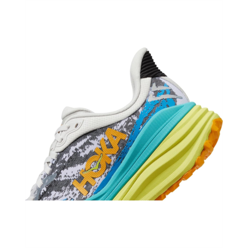 Explore all the terrains with the utmost comfort of the Hoka Stinson 7 sneakers. The shoes feature an engineered jacquard mesh upper along with textile lining for breathable comfort and a removable EVA insole for superior cushioning. They are designed with H-frame technology to keep your feet stable on uneven terrains and have a durable toe cap for enhanced toe protection.