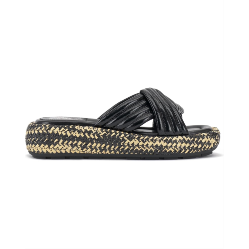 Step into effortless elegance with the Vince Camuto Luesda platform sandals, where artisanal craftsmanship meets contemporary flair. The leather upper, intricately stitched and knotted, offers a touch of refined artistry, while the platform wrapped in woven raffia exudes a laid-back, summery charm.