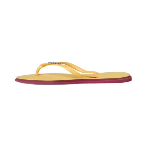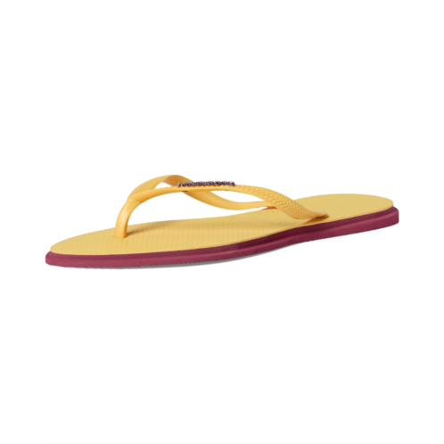 The Havaianas Slim Point Sandals are perfect for those who seek comfort with a trendy edge. A reinvention of the classic slim model-with thinner straps and sole-this sandal features a subtly pointed toe, a fashion-forward detail that's having a moment. Its non-slip rubber outsole is enhanced with contrasting side edges for an extra stylish touch. To top it off, it features the metallic Havaianas logo on the straps.