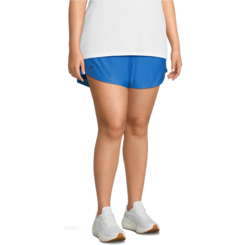 Enjoy every game you play feeling comfortable and chic in the Under Armour Plus Tech Play Up Shorts. The pull-on style shorts are crafted with an encased mid-rise waistband with signature Under Armour branding and a short length silhouette with curved hems and a brand logo detail at the front.