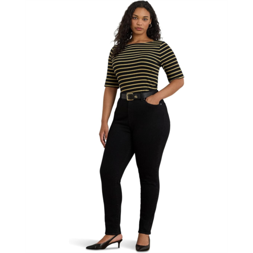 The Lauren Ralph Lauren Plus Size Metallic Striped Boatneck Tee strikes a perfect balance between timeless style and modern appeal with its yarn-dyed metallic striped pattern allover. This stretch-cotton blend tee is styled with elbow-length sleeves with folded cuffs, a boat neckline, and a side-split hem with an 'LRL'-embroidered logo at the right.