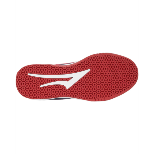 Uppers of durable suede and leather with breathable mesh trim.