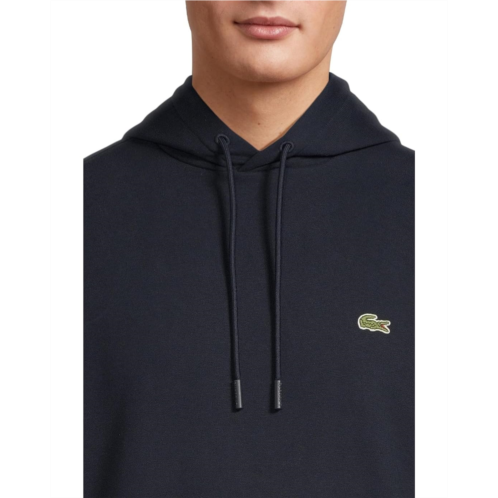 Lacoste Fleece Hoodie: The essential men's hoodie from Lacoste, made from soft cotton fleece with a comfortable cut and minimalist design, for casual chic. It features a jersey-lined hood, long sleeves, and a front kangaroo pocket. The regular fit and pullover style make it easy to throw on for a casual day out. With a straight hem for a clean finish, this hoodie is a must-have addition to your wardrobe.