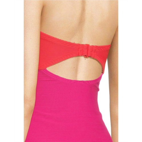 Make a statement at the pool wearing the Tommy Bahama Ocean Point Color-block Bandini. Crafted with textural ottoman rib details and a trendy color-block design, this bandeau neckline top is both fashionable and functional. The removable straps allow for versatile styling options, while the back hook closure ensures a perfect fit every time.