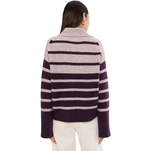 With its wide stripe detailing and wide ribbed trim, the Madewell Charm Gina Polo Stripe gives all the cozy feels to your chilly weather wardrobe styling. Crafted from a soft texture, this top offers a polo collar with a front button closure, dropped shoulders, long sleeves, wide cuffs, and a straight hemline.