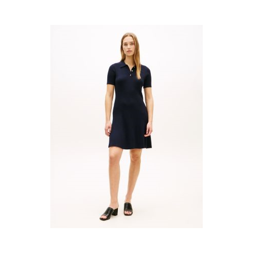 Tommy Hilfiger women's dress. Our rib knit polo mini dress is made from a soft, lightweight viscose blend. Designed in a flattering fit-and-flare silhouette, it features a polo placket with polished gold-tone buttons for an elevated feel.