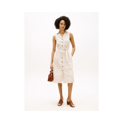 Tommy Hilfiger women's dress. Made from a lightweight blend of linen and cotton, our striped shirtdress keeps you cool and comfortable all day long. It’s an easy all-in-one designsimply add sandals or sneakers to complete the look.