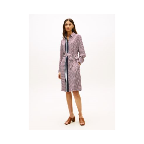 Tommy Hilfiger women's dress. Cut in a fluid drape, our shirtdress features a self-belt and handy side pockets. Designed in a houndstooth print with a sleek finish, it brings new life to your work and weekend wardrobe.