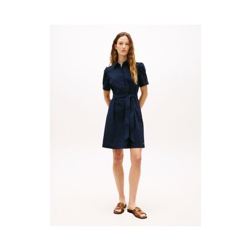 Tommy Hilfiger women's dress. Made from stretch cotton poplin, our shirtdress has a crisp, breathable feel. It’s designed with structured puff sleeves for added interest, while the sleek self-belt allows you to personalize the fit.