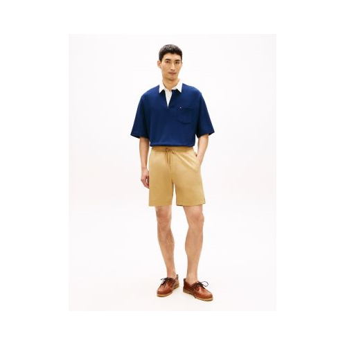 Tommy Hilfiger men's short. Garment washed for extra softness, our stretch-cotton shorts are designed with an elastic drawstring waist and are cut in a fit that keeps you comfortable all day.