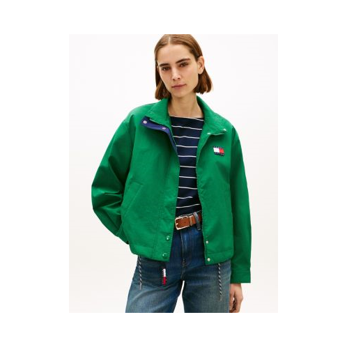 Tommy Hilfiger women's jacket. This sporty sailing jacket is made with a water-resistant, crispy nylon shell, a breathable mesh lining, and an adjustable drawcord hem. The funnel-neck collar is emblazoned with bold branding for a standout look.