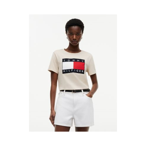 Tommy Hilfiger women's T-shirt. Made from lightweight cotton jersey, known for its breathability and stretch, this tee is super comfortable. A large flag logo completes the design, adding an iconic Tommy touch.