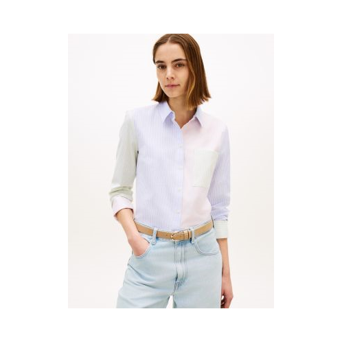 Tommy Hilfiger women's shirt. Shirting made with Oxford cloth is soft, breathable and durable. This version is designed in a playful mixed-stripe pattern, giving new life to your work and weekend wardrobe.